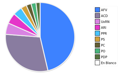 - Columna Porcentaje sobre Válidos no toma en cuenta los votos en blanco ni nulos (usado para D'Hondt de corresponder).