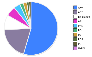 - Columna Porcentaje sobre Válidos no toma en cuenta los votos en blanco ni nulos (usado para D'Hondt de corresponder).