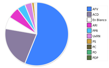 - Columna Porcentaje sobre Válidos no toma en cuenta los votos en blanco ni nulos (usado para D'Hondt de corresponder).