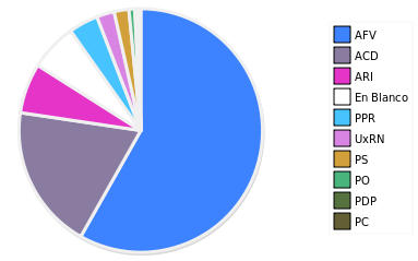 - Columna Porcentaje sobre Válidos no toma en cuenta los votos en blanco ni nulos (usado para D'Hondt de corresponder).