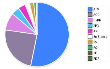 - Columna Porcentaje sobre Válidos no toma en cuenta los votos en blanco ni nulos (usado para D'Hondt de corresponder).