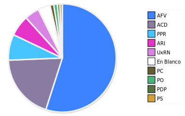 - Columna Porcentaje sobre Válidos no toma en cuenta los votos en blanco ni nulos (usado para D'Hondt de corresponder).