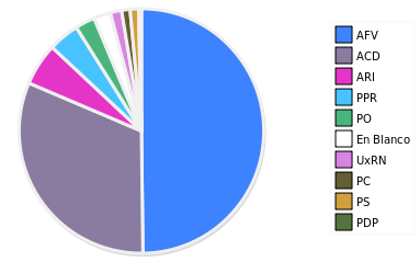 - Columna Porcentaje sobre Válidos no toma en cuenta los votos en blanco ni nulos (usado para D'Hondt de corresponder).