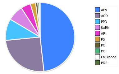 | 47 | COALICION CIVICA-AFIRMACIÓN PARA UNA REPÚBLICA IGUALITARIA | 13 | 4.50% | -- | 4.56% |