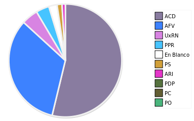 - Columna Porcentaje sobre Válidos no toma en cuenta los votos en blanco ni nulos (usado para D'Hondt de corresponder).