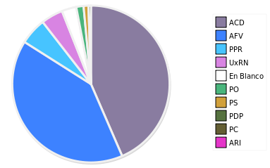 - Columna Porcentaje sobre Válidos no toma en cuenta los votos en blanco ni nulos (usado para D'Hondt de corresponder).