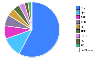 - Columna Porcentaje sobre Válidos no toma en cuenta los votos en blanco ni nulos (usado para D'Hondt de corresponder).