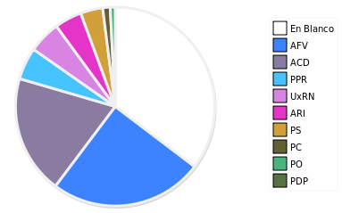 - Columna Porcentaje sobre Válidos no toma en cuenta los votos en blanco ni nulos (usado para D'Hondt de corresponder).
