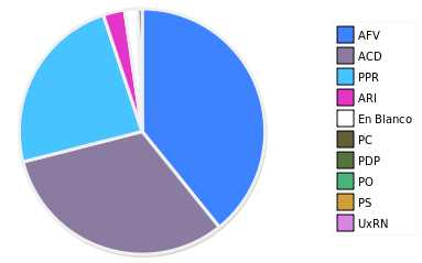 - Columna Porcentaje sobre Válidos no toma en cuenta los votos en blanco ni nulos (usado para D'Hondt de corresponder).