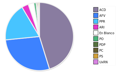 - Columna Porcentaje sobre Válidos no toma en cuenta los votos en blanco ni nulos (usado para D'Hondt de corresponder).