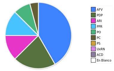 - Columna Porcentaje sobre Válidos no toma en cuenta los votos en blanco ni nulos (usado para D'Hondt de corresponder).