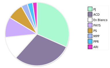 | 50 | PARTIDO SOCIALISTA | 18 | 8.00% | -- | 9.23% |