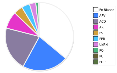 - Columna Porcentaje sobre Válidos no toma en cuenta los votos en blanco ni nulos (usado para D'Hondt de corresponder).