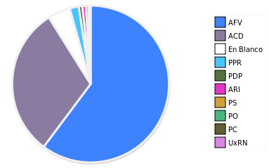 - Columna Porcentaje sobre Válidos no toma en cuenta los votos en blanco ni nulos (usado para D'Hondt de corresponder).