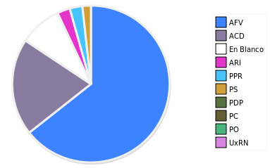 - Columna Porcentaje sobre Válidos no toma en cuenta los votos en blanco ni nulos (usado para D'Hondt de corresponder).