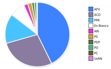 - Columna Porcentaje sobre Válidos no toma en cuenta los votos en blanco ni nulos (usado para D'Hondt de corresponder).