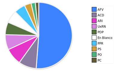 - Columna Porcentaje sobre Válidos no toma en cuenta los votos en blanco ni nulos (usado para D'Hondt de corresponder).
