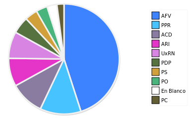 - Columna Porcentaje sobre Válidos no toma en cuenta los votos en blanco ni nulos (usado para D'Hondt de corresponder).