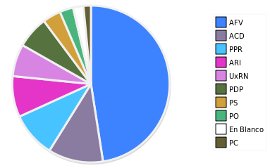 | 47 | COALICION CIVICA-AFIRMACIÓN PARA UNA REPÚBLICA IGUALITARIA | 187 | 8.23% | -- | 8.61% |