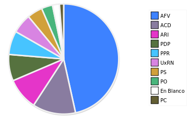 - Columna Porcentaje sobre Válidos no toma en cuenta los votos en blanco ni nulos (usado para D'Hondt de corresponder).
