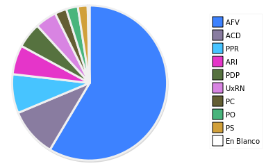 - Columna Porcentaje sobre Válidos no toma en cuenta los votos en blanco ni nulos (usado para D'Hondt de corresponder).