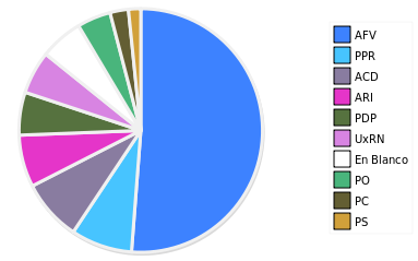- Columna Porcentaje sobre Válidos no toma en cuenta los votos en blanco ni nulos (usado para D'Hondt de corresponder).