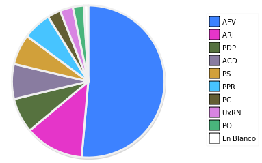 - Columna Porcentaje sobre Válidos no toma en cuenta los votos en blanco ni nulos (usado para D'Hondt de corresponder).