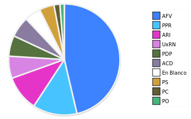 - Columna Porcentaje sobre Válidos no toma en cuenta los votos en blanco ni nulos (usado para D'Hondt de corresponder).