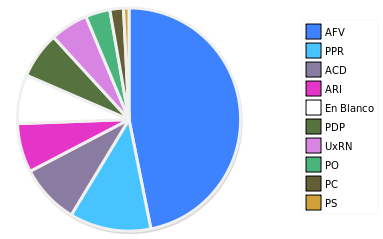 - Columna Porcentaje sobre Válidos no toma en cuenta los votos en blanco ni nulos (usado para D'Hondt de corresponder).