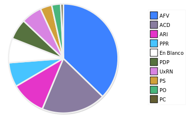 - Columna Porcentaje sobre Válidos no toma en cuenta los votos en blanco ni nulos (usado para D'Hondt de corresponder).