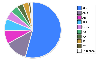 - Columna Porcentaje sobre Válidos no toma en cuenta los votos en blanco ni nulos (usado para D'Hondt de corresponder).
