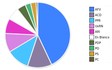 - Columna Porcentaje sobre Válidos no toma en cuenta los votos en blanco ni nulos (usado para D'Hondt de corresponder).