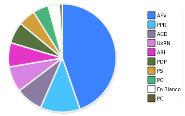 - Columna Porcentaje sobre Válidos no toma en cuenta los votos en blanco ni nulos (usado para D'Hondt de corresponder).