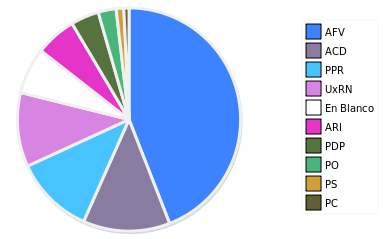 - Columna Porcentaje sobre Válidos no toma en cuenta los votos en blanco ni nulos (usado para D'Hondt de corresponder).