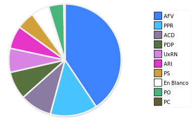 - Columna Porcentaje sobre Válidos no toma en cuenta los votos en blanco ni nulos (usado para D'Hondt de corresponder).