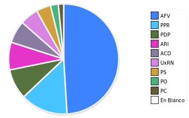 - Columna Porcentaje sobre Válidos no toma en cuenta los votos en blanco ni nulos (usado para D'Hondt de corresponder).