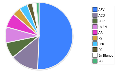 - Columna Porcentaje sobre Válidos no toma en cuenta los votos en blanco ni nulos (usado para D'Hondt de corresponder).