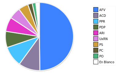 - Columna Porcentaje sobre Válidos no toma en cuenta los votos en blanco ni nulos (usado para D'Hondt de corresponder).