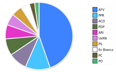 - Columna Porcentaje sobre Válidos no toma en cuenta los votos en blanco ni nulos (usado para D'Hondt de corresponder).