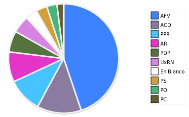 | 9 | PARTIDO DEMOCRATA PROGRESISTA | 138 | 6.10% | -- | 6.48% |