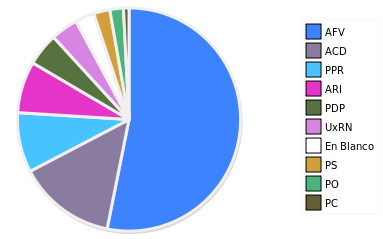 - Columna Porcentaje sobre Válidos no toma en cuenta los votos en blanco ni nulos (usado para D'Hondt de corresponder).