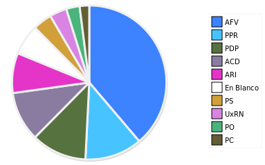 - Columna Porcentaje sobre Válidos no toma en cuenta los votos en blanco ni nulos (usado para D'Hondt de corresponder).