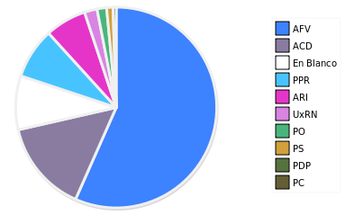 - Columna Porcentaje sobre Válidos no toma en cuenta los votos en blanco ni nulos (usado para D'Hondt de corresponder).