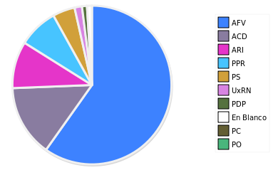 - Columna Porcentaje sobre Válidos no toma en cuenta los votos en blanco ni nulos (usado para D'Hondt de corresponder).