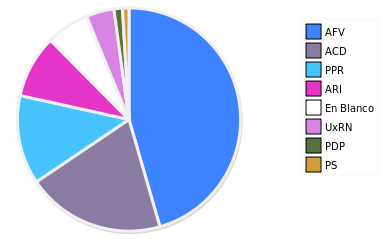 - Columna Porcentaje sobre Válidos no toma en cuenta los votos en blanco ni nulos (usado para D'Hondt de corresponder).
