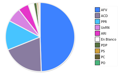 - Columna Porcentaje sobre Válidos no toma en cuenta los votos en blanco ni nulos (usado para D'Hondt de corresponder).