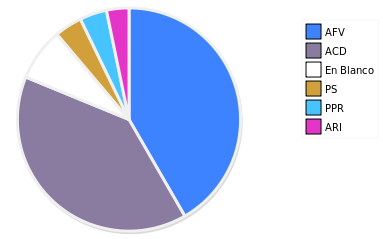 - Columna Porcentaje sobre Válidos no toma en cuenta los votos en blanco ni nulos (usado para D'Hondt de corresponder).