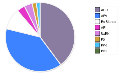 - Columna Porcentaje sobre Válidos no toma en cuenta los votos en blanco ni nulos (usado para D'Hondt de corresponder).