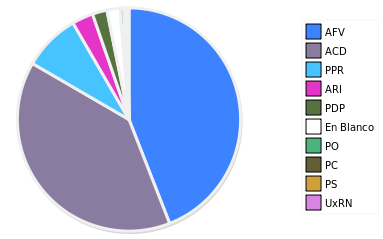 - Columna Porcentaje sobre Válidos no toma en cuenta los votos en blanco ni nulos (usado para D'Hondt de corresponder).
