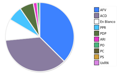 - Columna Porcentaje sobre Válidos no toma en cuenta los votos en blanco ni nulos (usado para D'Hondt de corresponder).